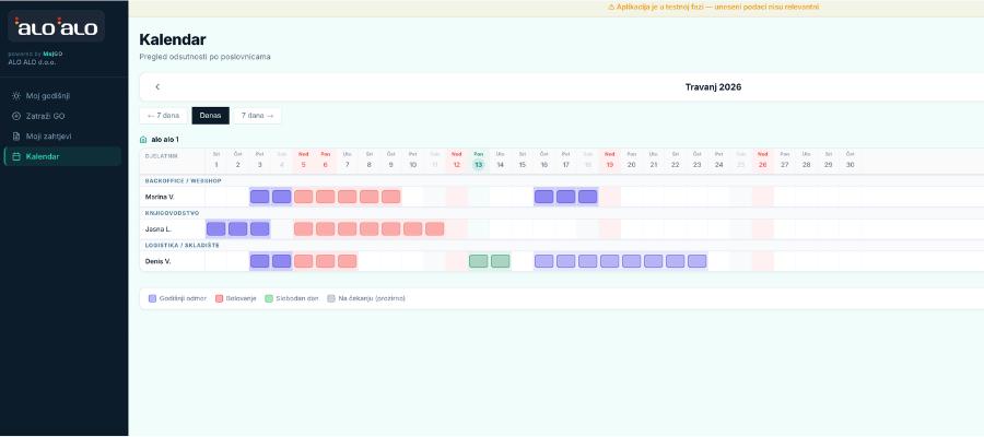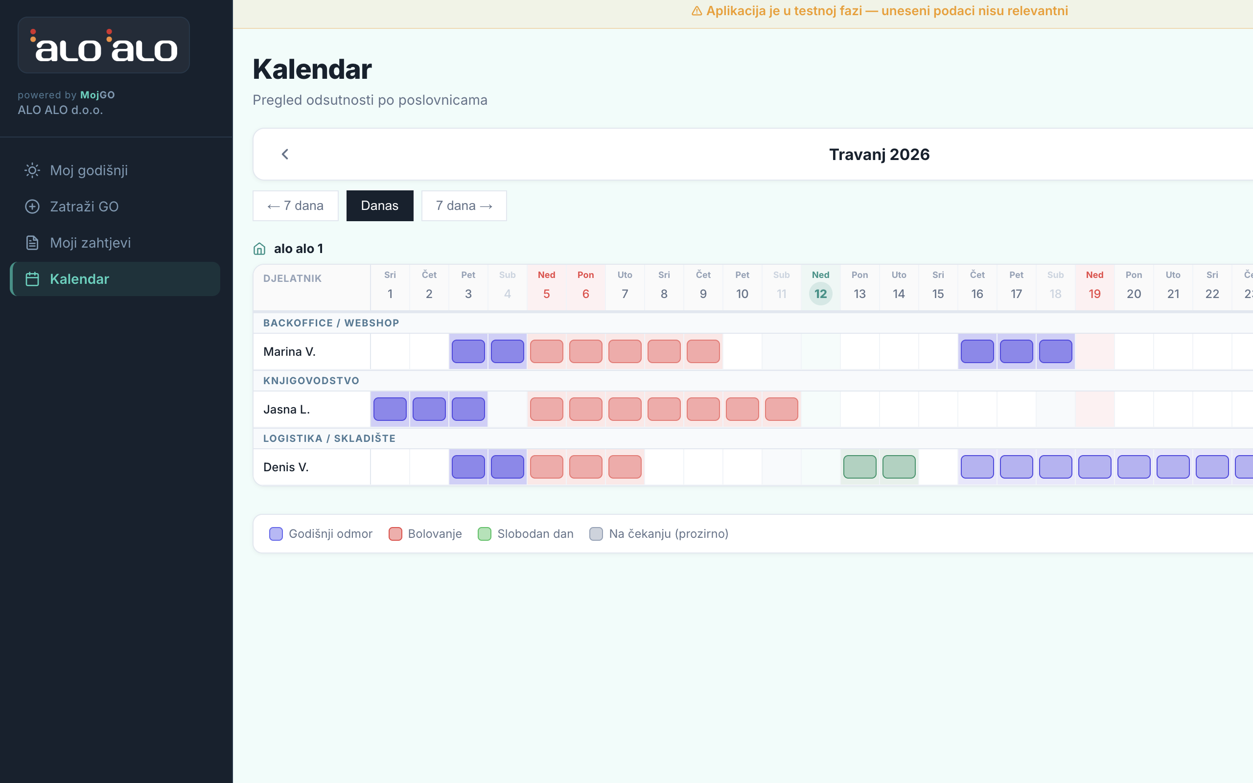 MojGO prati odmore i bolovanja umjesto vas, piše odluke i prikazuje pregled kalendara — sve na jednom mjestu.
